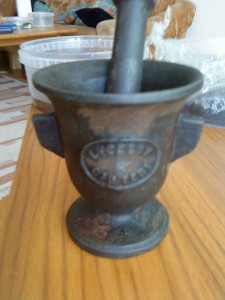 Jag har en mortel från Lyckeby Gjuteri. Ärvd efter min morfar som var statare på Augerums gård