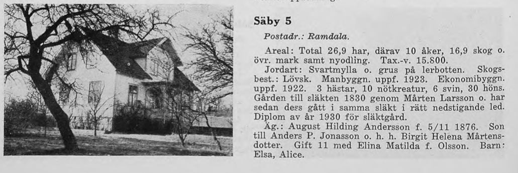Hilding Övertog gården 1903 efter sin far Anders Peter Jonasson