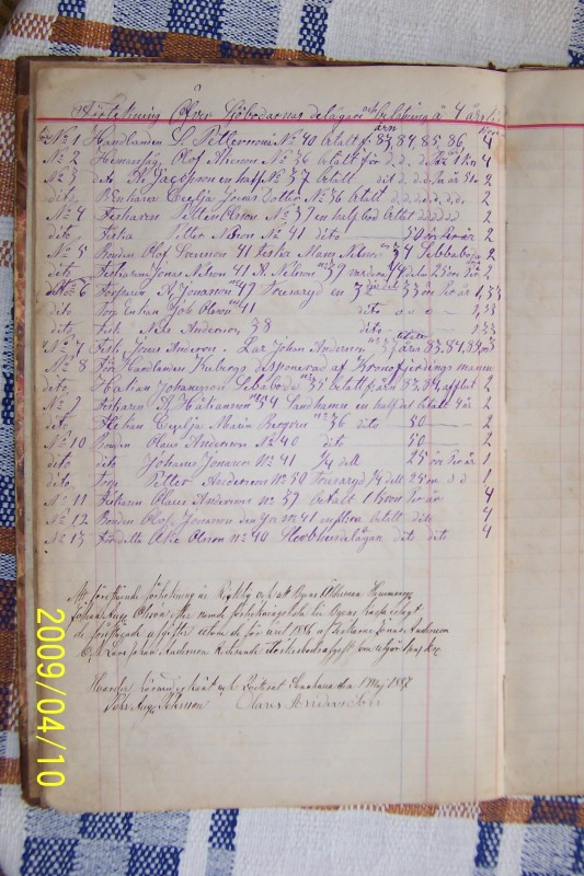 Utdrag från ” Kontra Bok för Svanhalla By ” år 1887